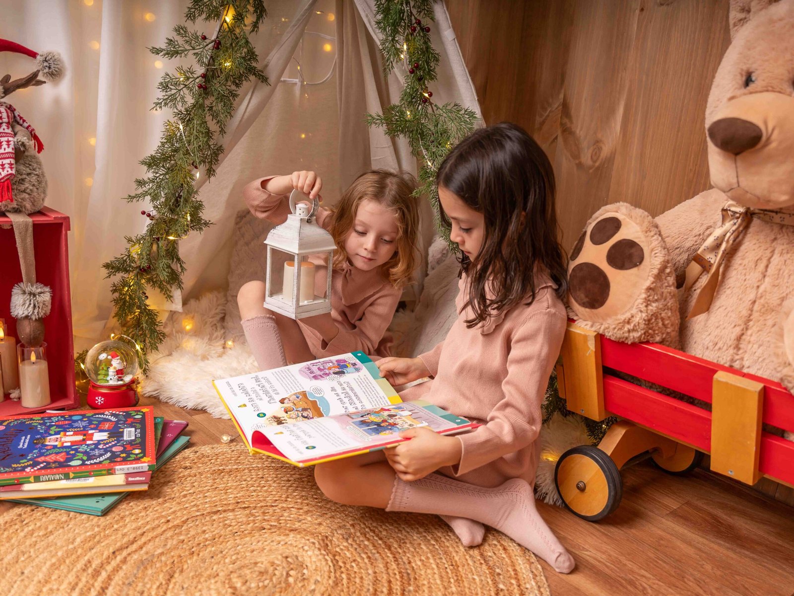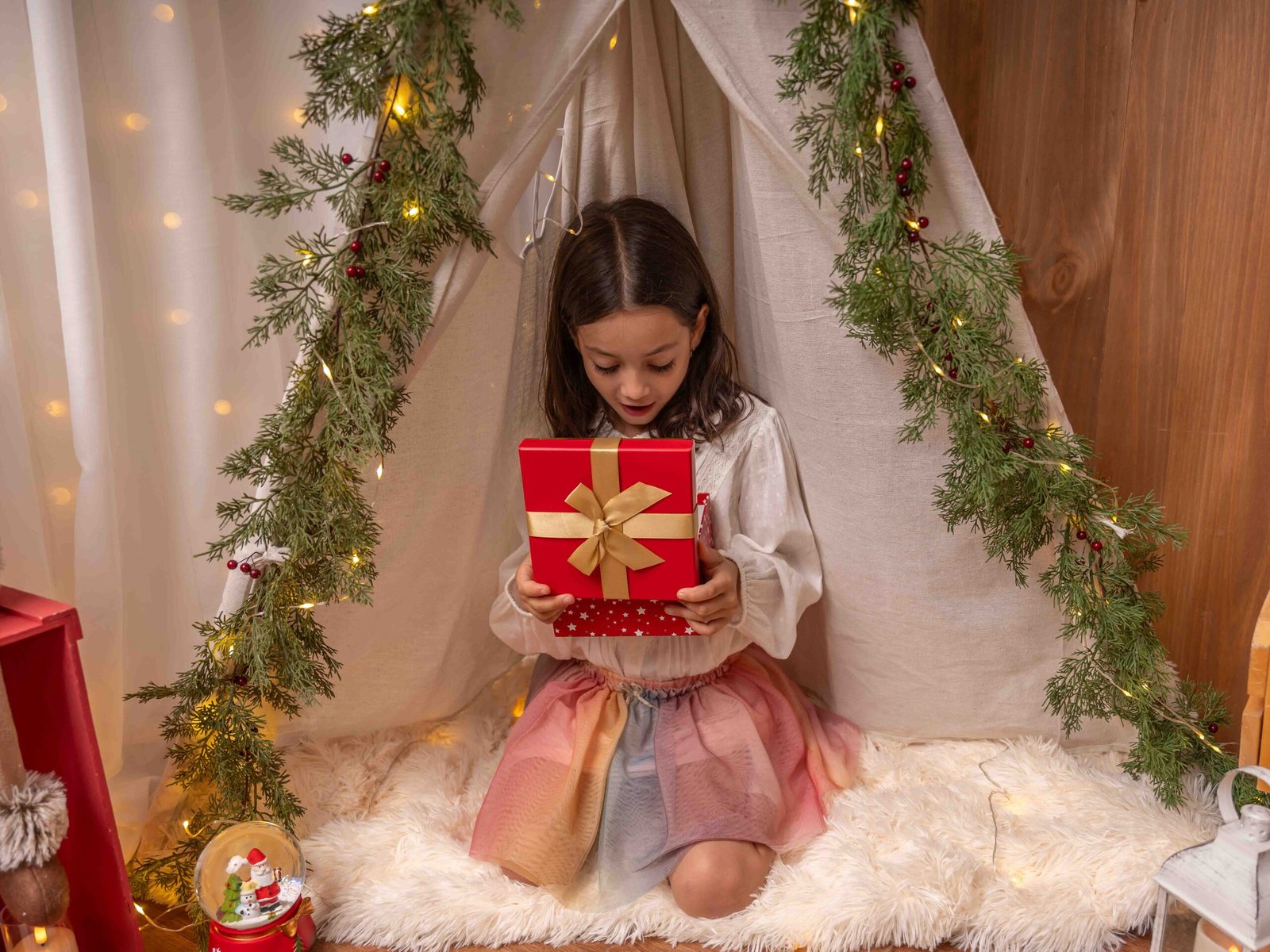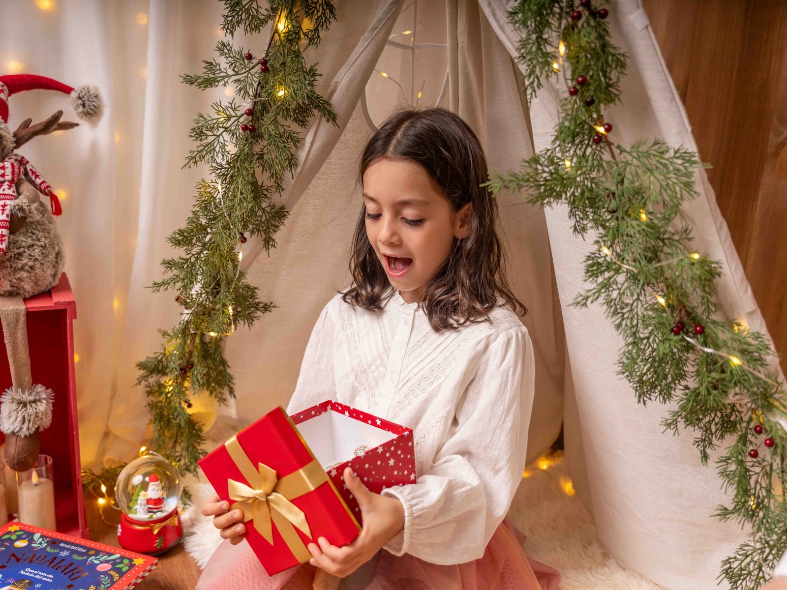 El escenario se adapta a lo que queráis, puede ser una “mañana de Navidad”, con vuestros pijamas a juego, una “tarde casual”, pasando un rato en familia, o una “Nochebuena”, vestidos más elegantes y formales, así que podréis elegir el estilo de sesión que más se adapte a vuestra familia.