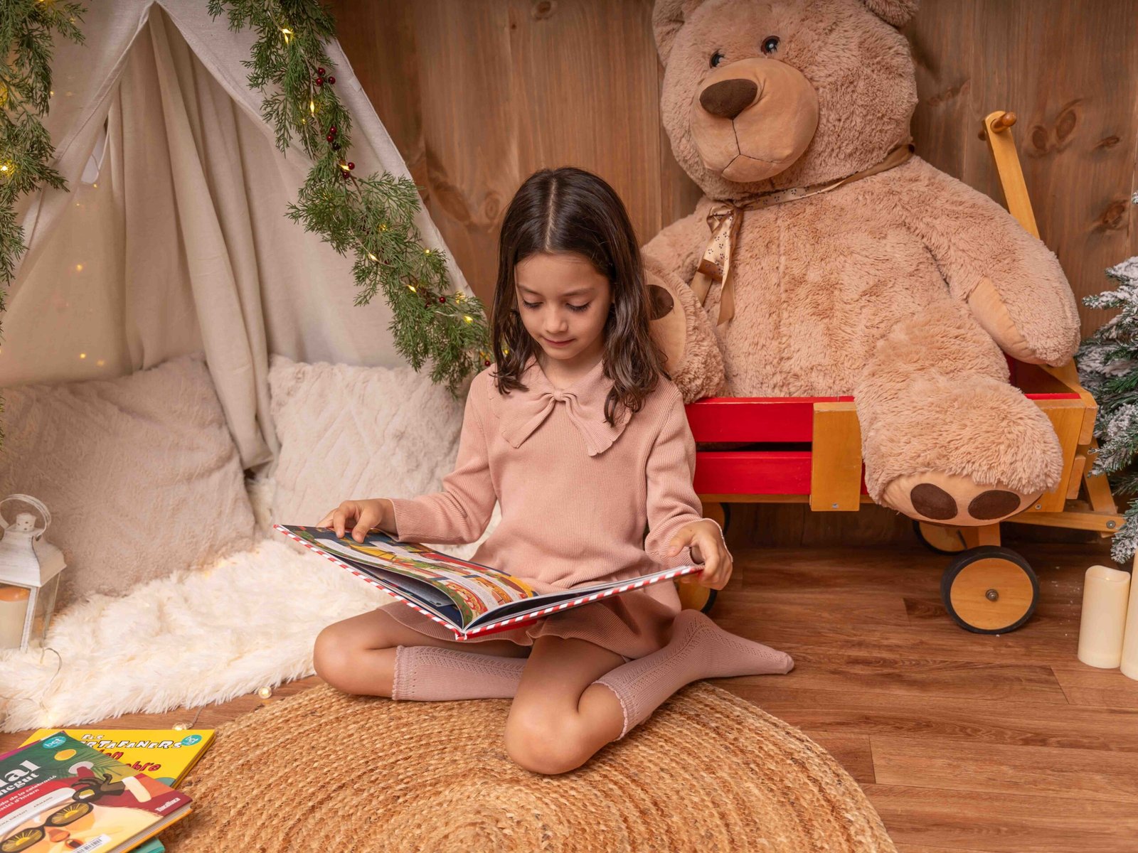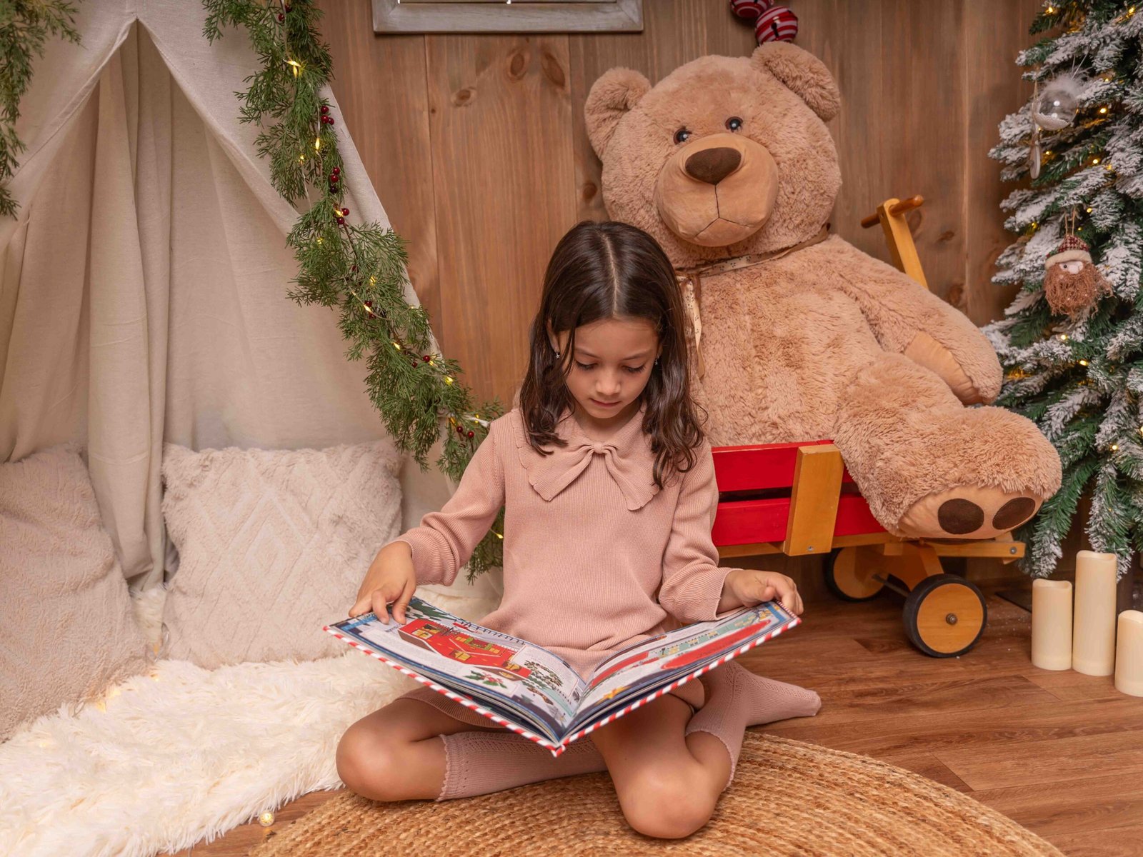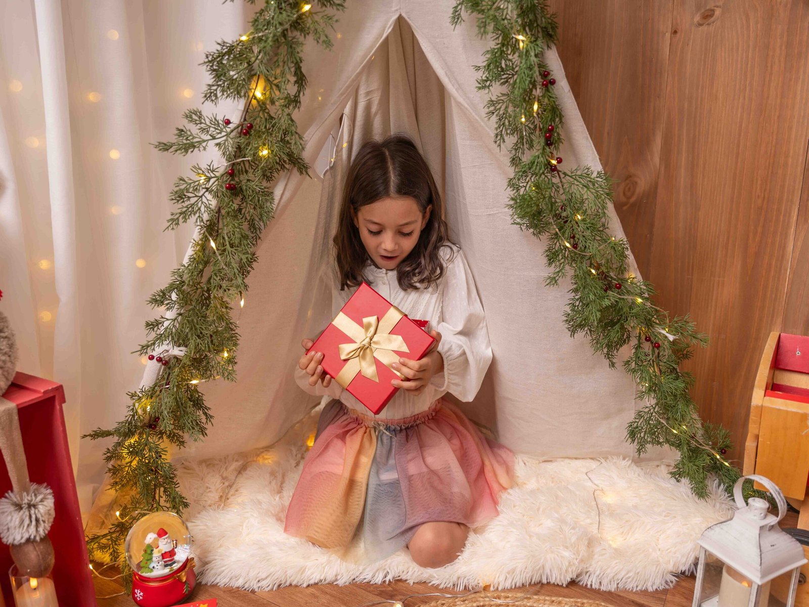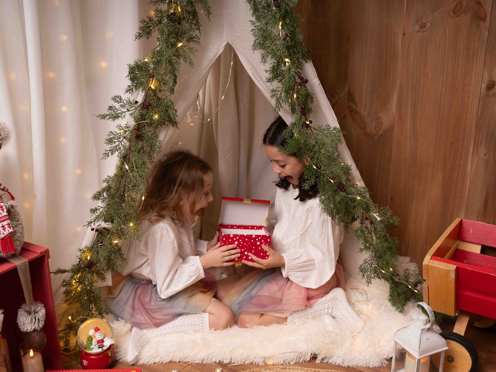 El escenario se adapta a lo que queráis, puede ser una “mañana de Navidad”, con vuestros pijamas a juego, una “tarde casual”, pasando un rato en familia, o una “Nochebuena”, vestidos más elegantes y formales, así que podréis elegir el estilo de sesión que más se adapte a vuestra familia.