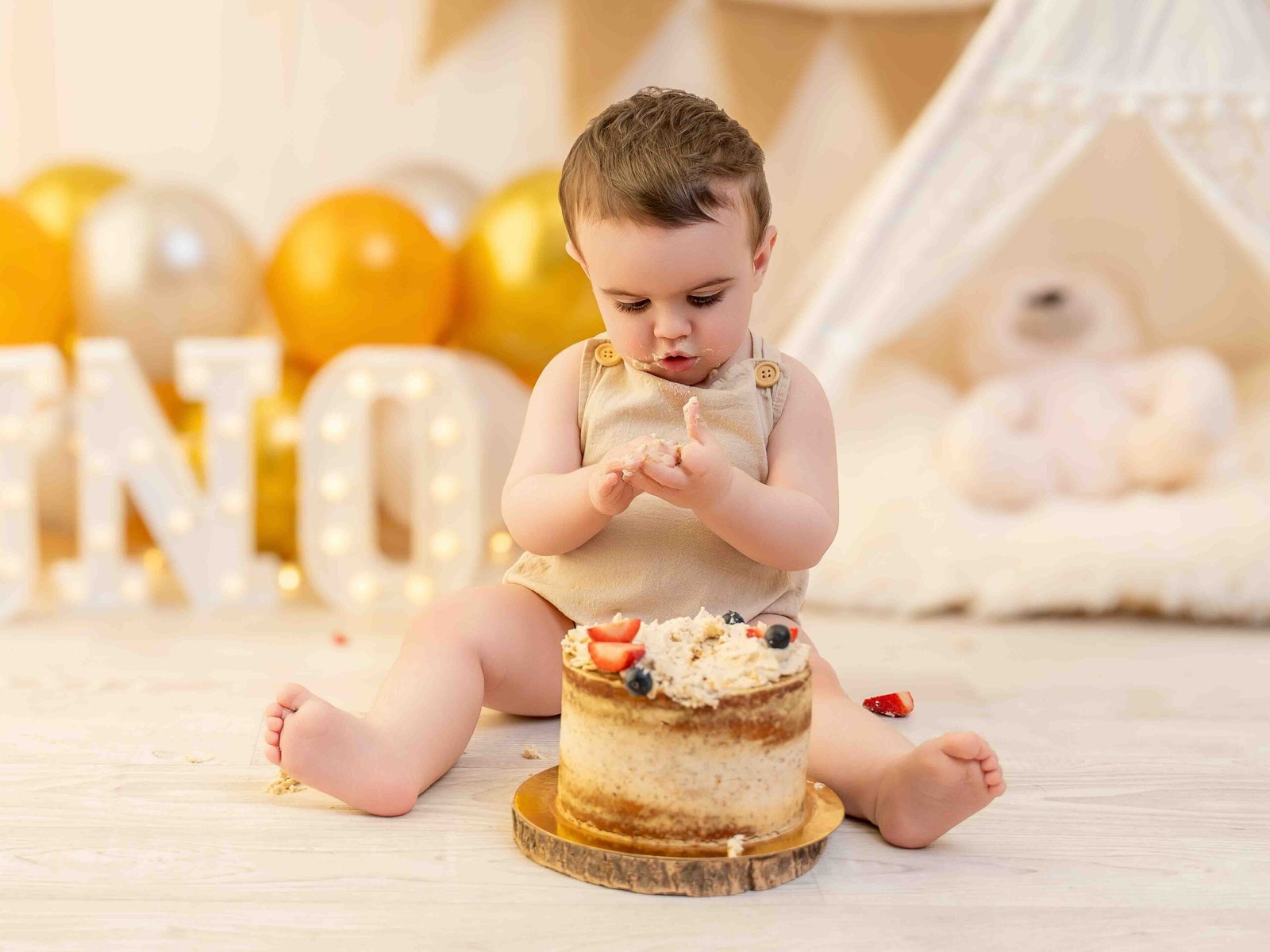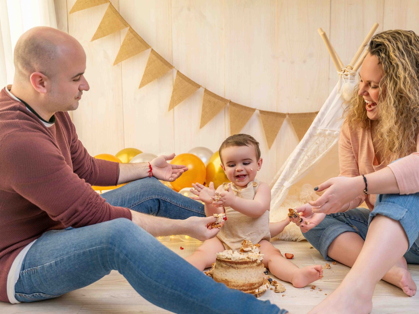 Es una experiencia única, ya que cada peque reacciona de forma diferente ante su primera tarta de cumpleaños, probando nuevos sabores y texturas, donde va a pringarse de tarta mientras hacemos fotos de sus divertidos gestos.